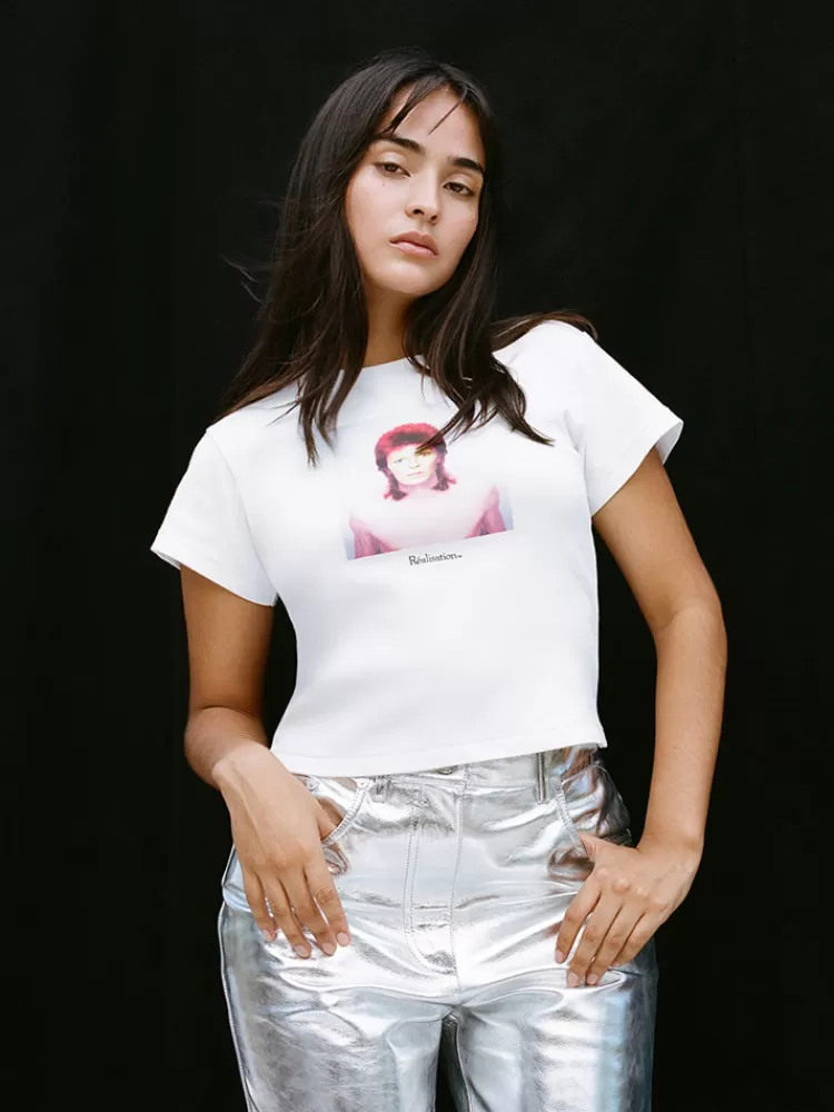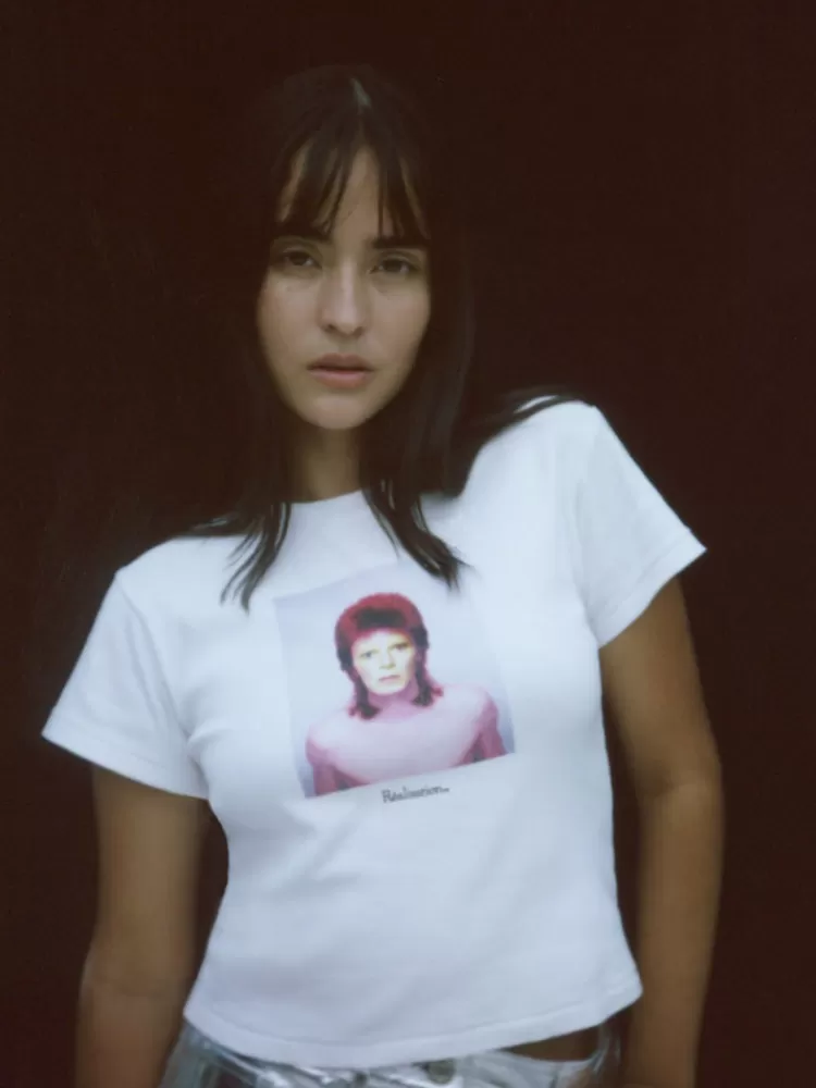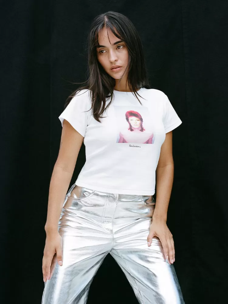 The Story Goes…The Images Were Meant For Vogue, A Paris Photoshoot By Justin De Villeneuve And David Bowie Teamed With Model Of The Moment Twiggy – But It Turned Into The Unique Cover Art For David Bowie’s 1973 Pin Ups Album. The Pin Ups Baby Tee Has David Bowie Gazing Right At You With True Androgynous Beauty. One To Collect!