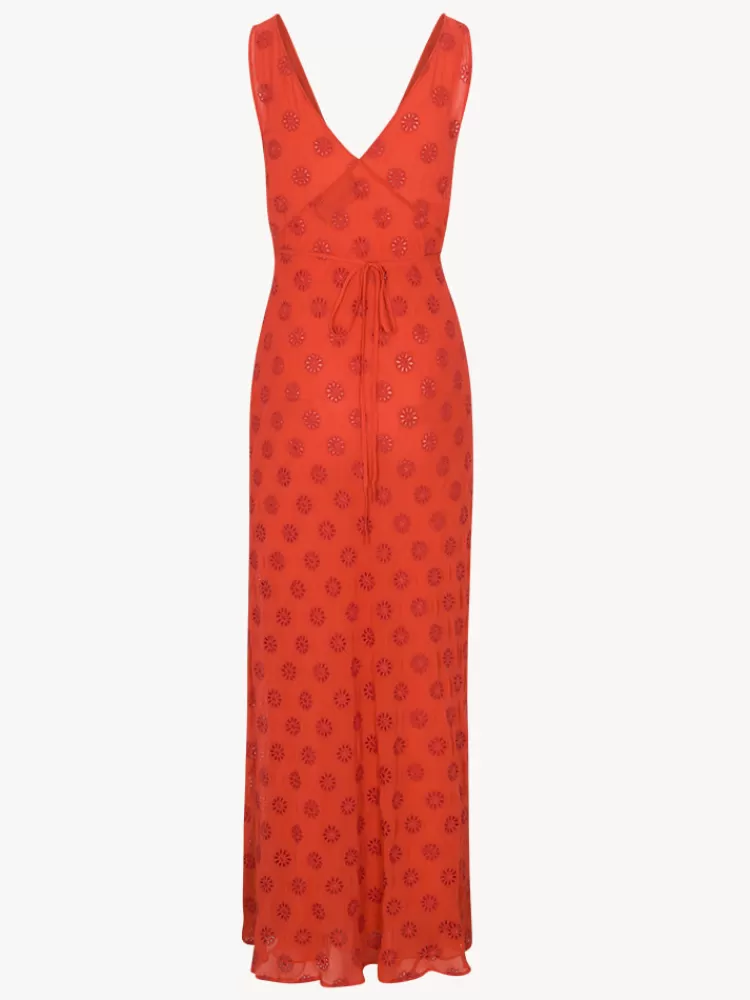 The Limited Freya In Sunrise Is Your Ultimate Summer Dress. The Bias Cut, Ankle Grazing Style Will Have You Feeling On Holiday Even When You’Re On Staycation. Fully Lined With An Adjustable Tie At The Waist Makes Her The Perfect Embroidered Silk Dress For All Dreamgirls. Curve, She’s The One…Tall, The Length Is Perfect…Petite, That Waist Strap Has You Nipped In Just Where You Want It.