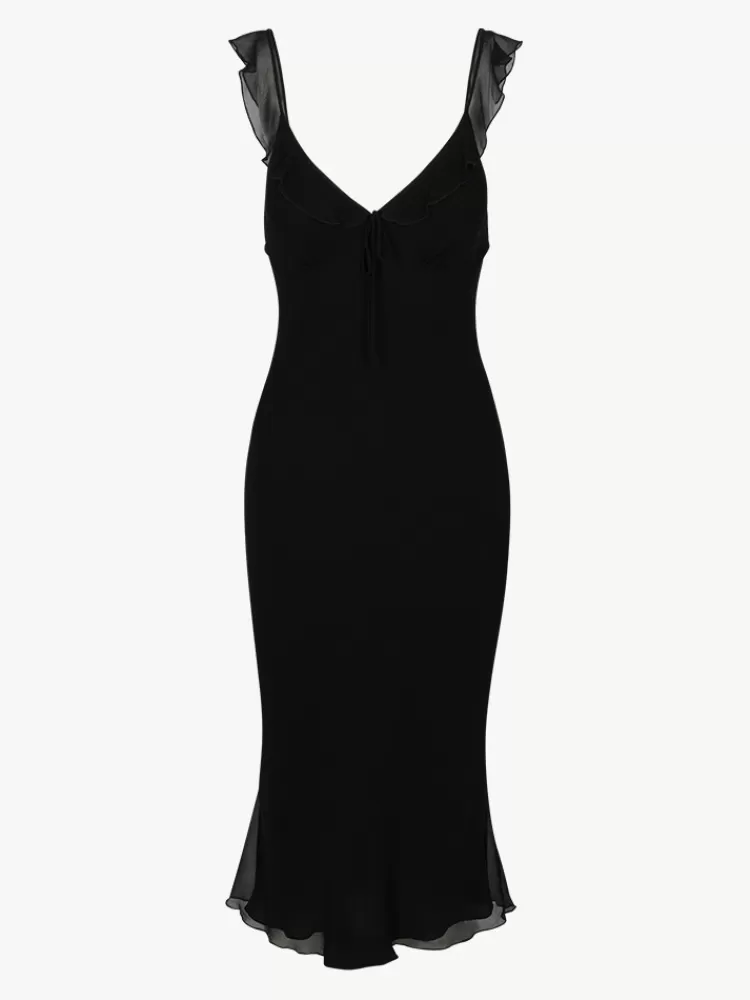 Our New Lbd Is Going To Be The One That You Want. Delicate With Her Soft Silk Chiffon Around The Straps And Bust – Making You Feel Feminine In The Ultimate Way. Double Layered Black Silk, With A Small Tie Detail At The Bust, She’s Got A Slight Flip In The Skirt And Is The Perfect Midi Length. Black, Delicate, Sexy And Elegant. The Gemma Is Here.