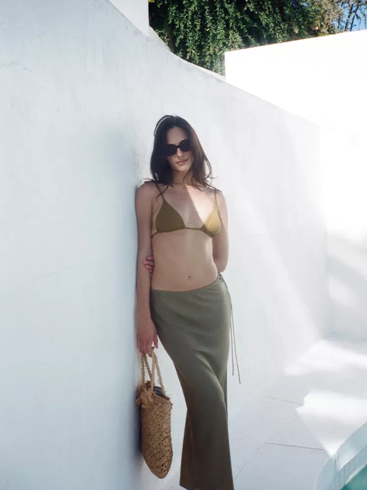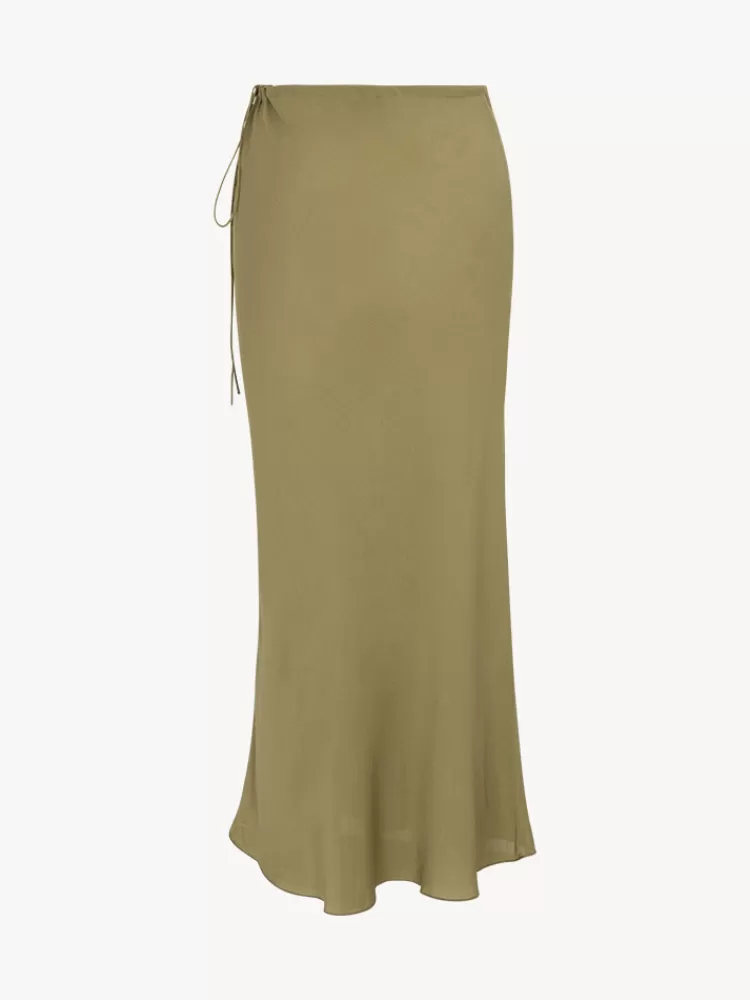 The Georgia – Elegant, Bias Cut And Slip On. She’s Long And Can Be Worn Low On The Hip To Show A Little Mid Skin, Or Pulled In With The Draw String To Sit A Little Higher. The Single Layer Silk Georgia Skirt Will Have You Gliding Out Of Summer And Straight Into The Cooler Months. Look Just As Chic Wearing It With A Classic Real Tank Or The Long Sleeve Chloe Top.