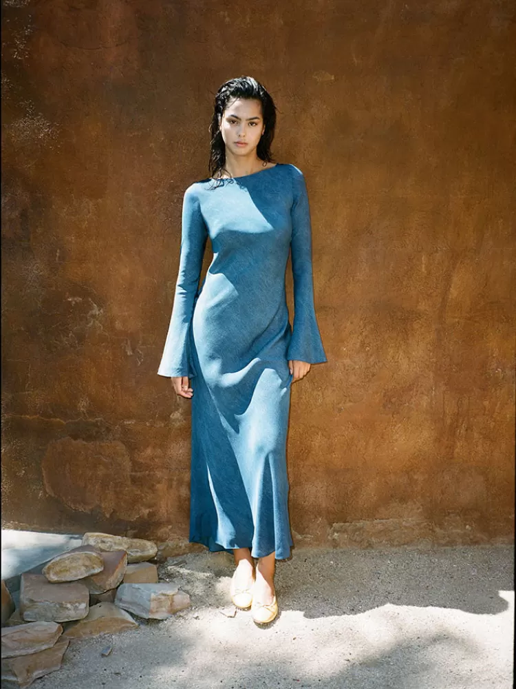 - Full Length Maxi Dress With Long Bell Sleeves