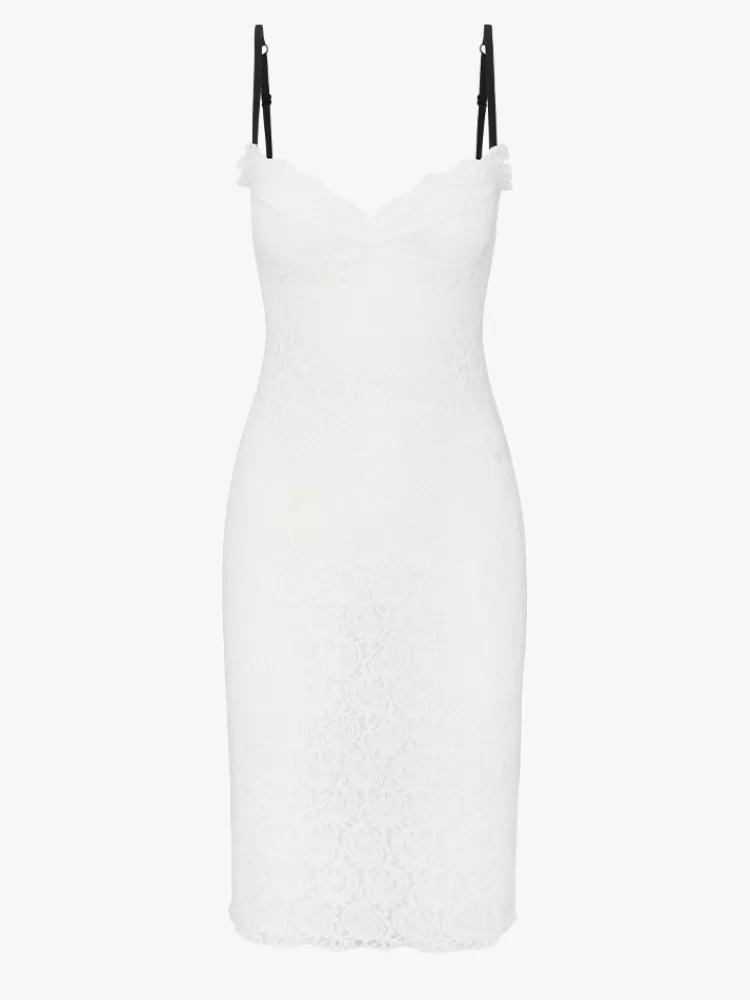 The Gisele Is The Dress You’Re Going To Be Rolling Up And Packing, Only To Shake It Out And Slip Her Back On. She’s Stretch Lace, With A Soft Structured Bust To Give You Curves Just Where You Want Them. Fully Lined And With Adjustable Grosgrain Straps, Creating The Perfect Semi Sheer Lace Dress That Takes You From Lunch To Drinks, Then On To Dinner And Dancing. Gisele Can Do It All.