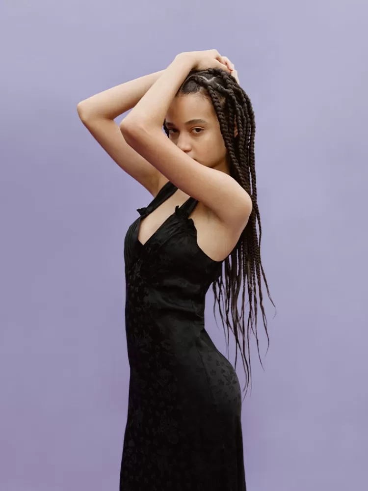 She’s Femininity, Romance And Off Duty Daisy Buchanan All Sewn Up In To One Elegant Ankle Grazing Slip Dress. Pin Tucked Frill Detail On The Straps. No Zip Cause She’s Cut On The Bias – Ready To Glide Over Your Shoulders And On To Those Hips! The Ivy – You’Re Going To Want Her.