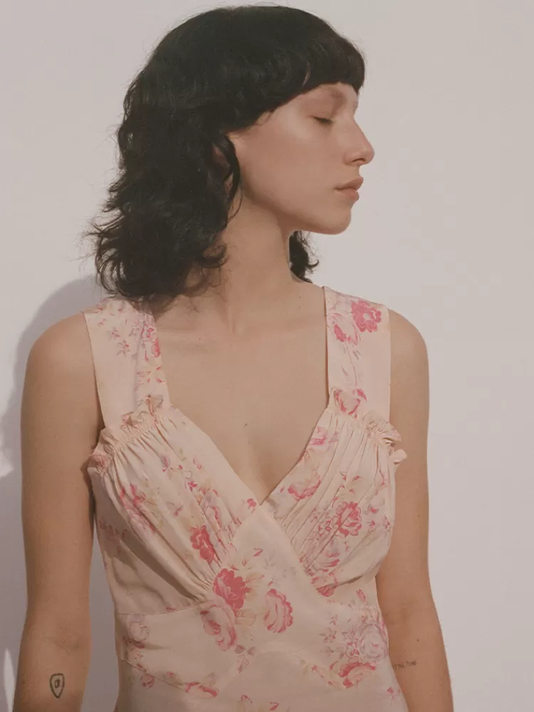 She’s Femininity, Romance And Off Duty Daisy Buchanan All Sewn Up In To One Elegant Ankle Grazing Slip Dress. Pin Tucked Frill Detail On The Straps. No Zip Cause She’s Cut On The Bias – Ready To Glide Over Your Shoulders And On To Those Hips! The Ivy – You’Re Going To Want Her.