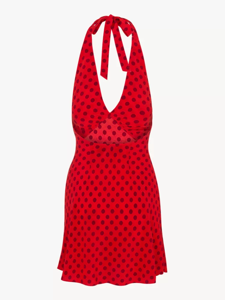 Backless With A Marilyn Monroe Style Halter Top – The Leila In Aura Will Have You Grabbing Your Mulholland Glasses, Letting Your Hair Down And Buzzing Off On The Back Of A Motorbike Until The Sun Comes Up. Short But Not Too Mini, The Red Polka Dot Leila That Will Have You Teleported Right To That Perfect Holiday Spot, Or Daydreaming Of Your Next Steamy Summer Getaway.
