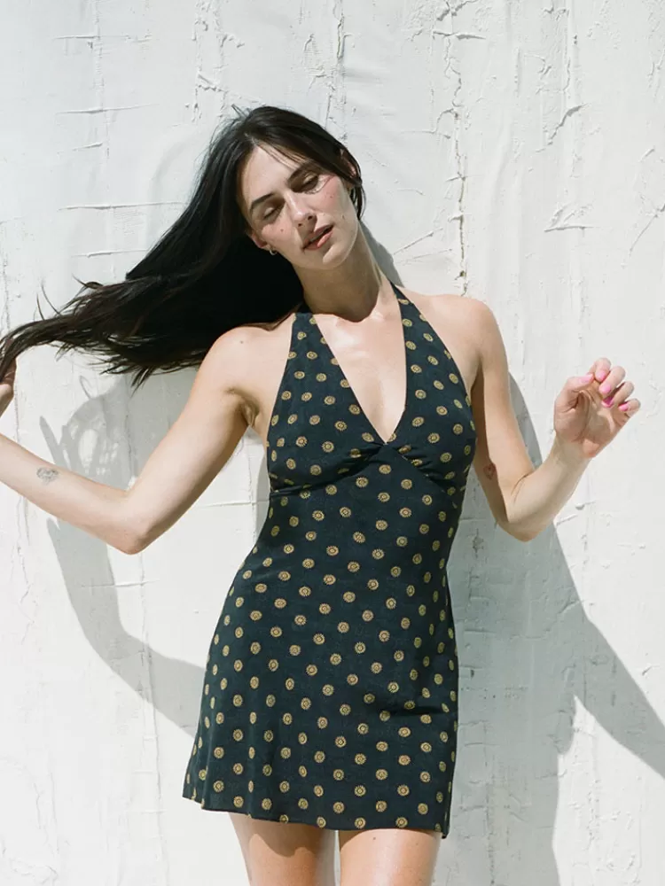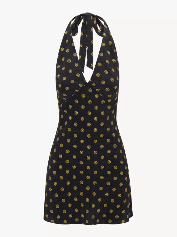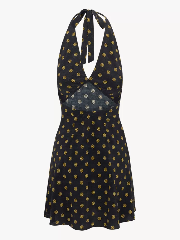 Backless With A Marilyn Monroe Style Halter Top – The Leila In Sunburst Will Have You Grabbing Your Mulholland Glasses, Letting Your Hair Down And Buzzing Off On The Back Of A Motorbike Until The Sun Comes Up. Short But Not Too Mini, The Leila Will Have You Teleported Right To That Perfect Holiday Spot, Or Daydreaming Of Your Next Steamy Summer Getaway.