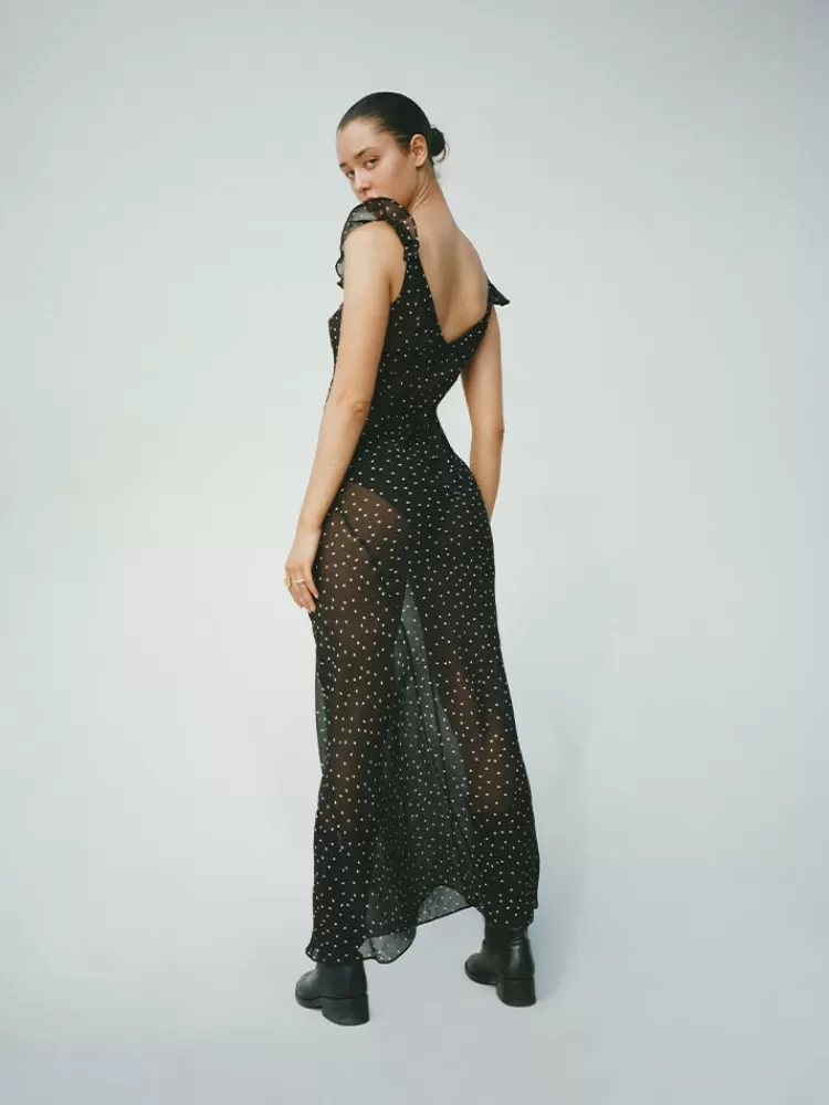 The Lila With Her Delicate Capped Frill Sleeve, Seam Detailing And Back Waist Tie, Is Here To Make You Feel Your Most Feminine Self. The Silk Crepon Fabric Gives You The Option To Wear Her Sexy And Sheer, Or For More Coverage We Suggest The Natasha Slip In Black Worn Underneath. Brush Those Locks, Put In Your Hoops, Add A Lick Of Gloss On Your Lips – And You’Ll Have The Chicest Look Of The Season.