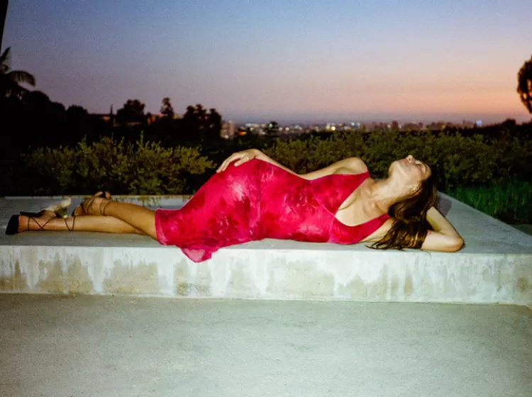 Hot Fuchsia Pink Roses On Top, With A Pop Of Red Silk Lining Underneath…The Marie Is Here. Pure Silk, With A Contrast Black Tie At The Back To Pull You In At The Waist, Straps Just Wide Enough To Conceal Your Bra And The Perfect Deep V-Neckline To Reveal The Right Amount Of Decolletage. Length – She’s Hitting At The Right Spot. For Those With A Taste For The 90’s, Pair Her With Your Best Boot, Or For The More Fem Ladies, A High High Heel Is The Way To Go.
