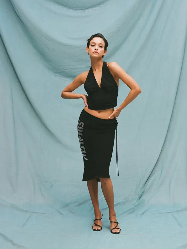 The Double Layered Silk Georgette Midi Memphis Skirt With The Sexy Keyhole Side Opening Will Have You Always On Their Mind. Black, Hip Hugging And Embellished With The Word Memphis – Makes A Perfect Set When Paired With The Tennessee Top In Viva Las Vegas, Or For A More Casual Vibe, A Simple Black Or White Tank. The Memphis Skirt Is A Little Less Conversation, A Little More Action.
