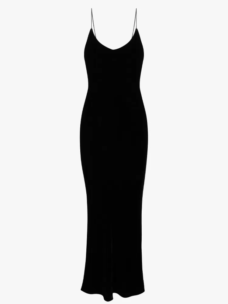Luxe To The Ground With A Low, Low Back. Need That Perfect Black Velvet Slip To Take You From 0-100 In A Split Second? The Rachel Is Your Girl. Make A Statement When You Take Off Your Coat, Turn Around And Reveal! Sexy Nights Await.