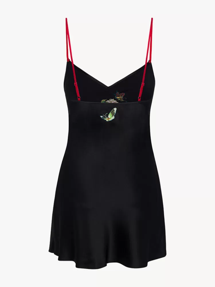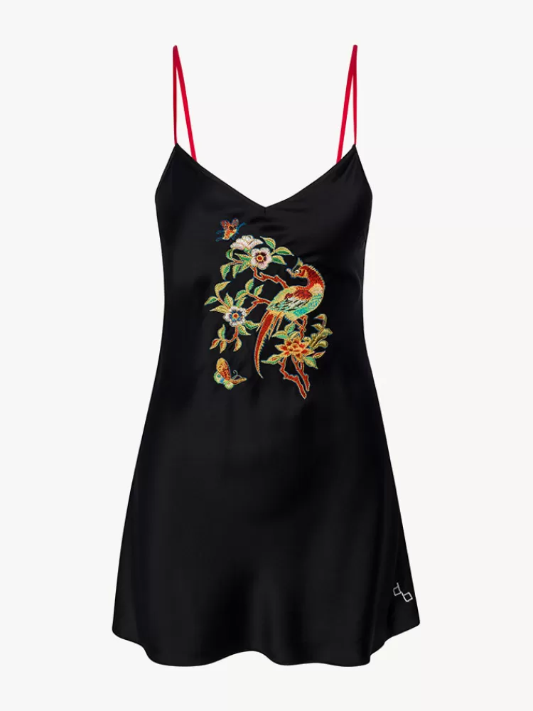 - Embroidered Silk Sleepwear Mini Chemise Dress