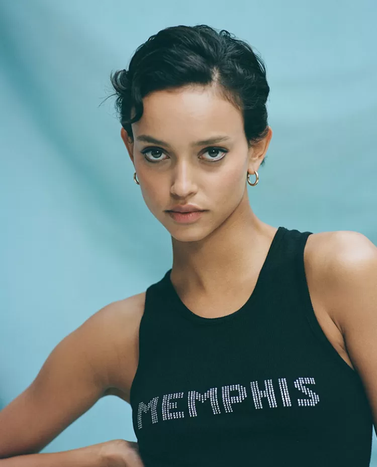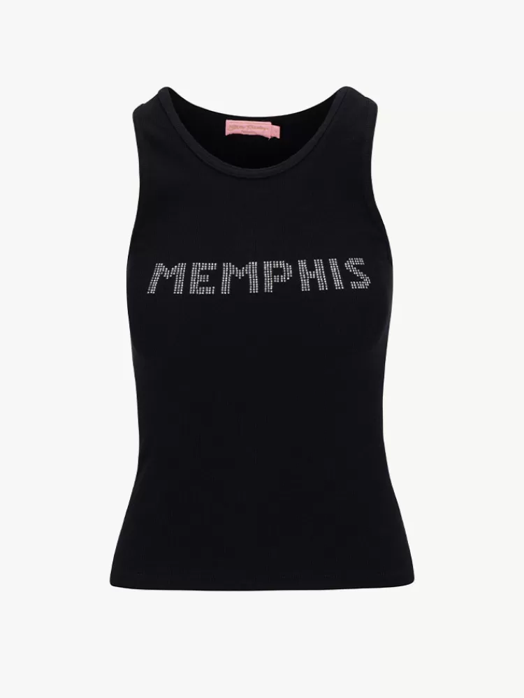 The Classic Rib Tank With A Smack Of Sparkle…Memphis Blazes Across The Chest As A Reminder Of Where It All Started, A Hotfix Embellishment Which Reminds Us Of The Most Famous Vegas Scene. The Spinout Tank Is Our Version Of Elvis Merch, A Little Bit Of Bling On Your Most Favourite Classic Tank Shape.