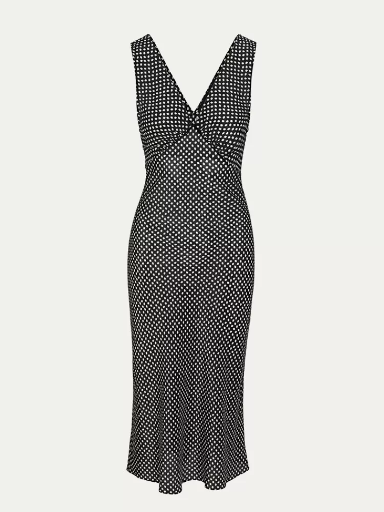 The Stephanie – Just Slip Her On And You’Ve Already Got The Perfect Outfit. This Dress Is What You’Ve Been Searching For – Pure Silk, A Tie At The Back To Pull You In At The Waist, Straps Wide Enough To Conceal Your Bra And The Perfect V-Neckline To Reveal Just The Right Amount Of Decolletage. Length – She’s Hitting At The Right Spot – Mid Calf For Those Of Medium Height, A Little Higher For All You Long Legged Ladies, And Still Showing A Flattering Amount Of Leg If You’Re Under 5’3. For Those With A Taste For The 90’s, Pair Her With Your Best Boot, Or For The More Fem Ladies, A Delicate Heel Will Keep Her Pretty.