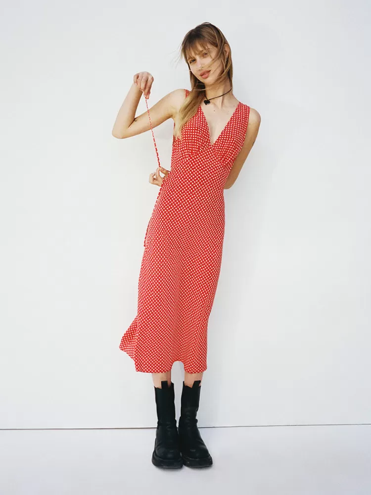The Stephanie – Just Slip Her On And You’Ve Already Got The Perfect Outfit. This Dress Is What You’Ve Been Searching For – Pure Silk, A Tie At The Back To Pull You In At The Waist, Straps Wide Enough To Conceal Your Bra And The Perfect V-Neckline To Reveal Just The Right Amount Of Decolletage. Length – She’s Hitting At The Right Spot – Mid Calf For Those Of Medium Height, A Little Higher For All You Long Legged Ladies, And Still Showing A Flattering Amount Of Leg If You’Re Under 5’3. For Those With A Taste For The 90’s, Pair Her With Your Best Boot, Or For The More Fem Ladies, A Delicate Heel Will Keep Her Pretty.
