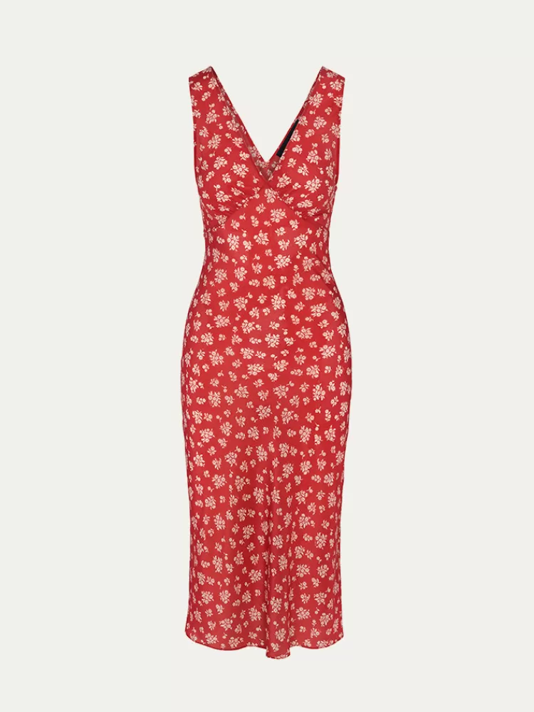 The Stephanie – Just Slip Her On And You’Ve Already Got The Perfect Outfit. This Dress Is What You’Ve Been Searching For – Pure Silk, A Tie At The Back To Pull You In At The Waist, Straps Wide Enough To Conceal Your Bra And The Perfect V-Neckline To Reveal Just The Right Amount Of Decolletage. Length – She’s Hitting At The Right Spot – Mid Calf For Those Of Medium Height, A Little Higher For All You Long Legged Ladies, And Still Showing A Flattering Amount Of Leg If You’Re Under 5’3. For Those With A Taste For The 90’s, Pair Her With Your Best Boot, Or For The More Fem Ladies, A Delicate Heel Will Keep Her Pretty.