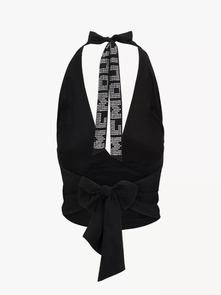 - Sleeveless, Open Back V-Neck Halter Top