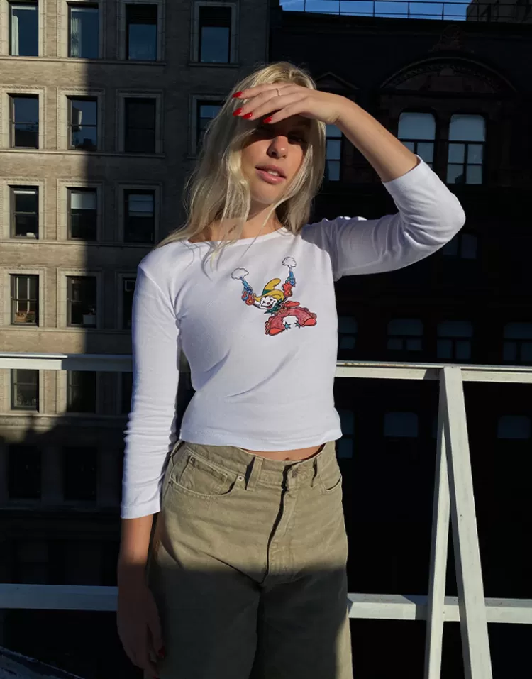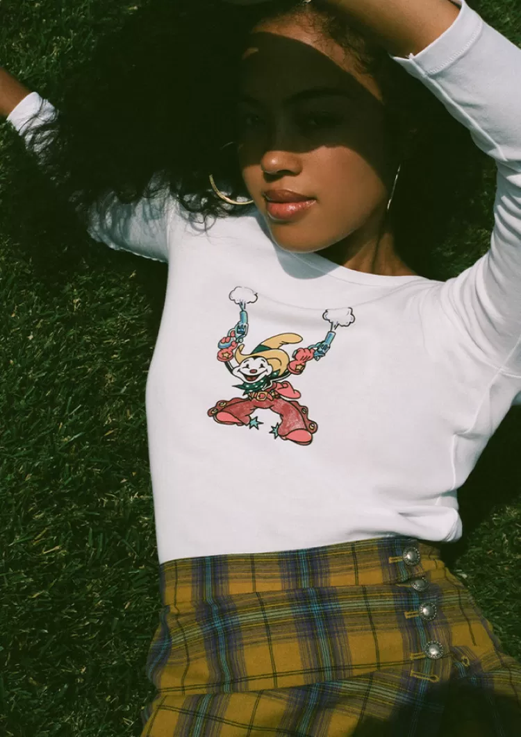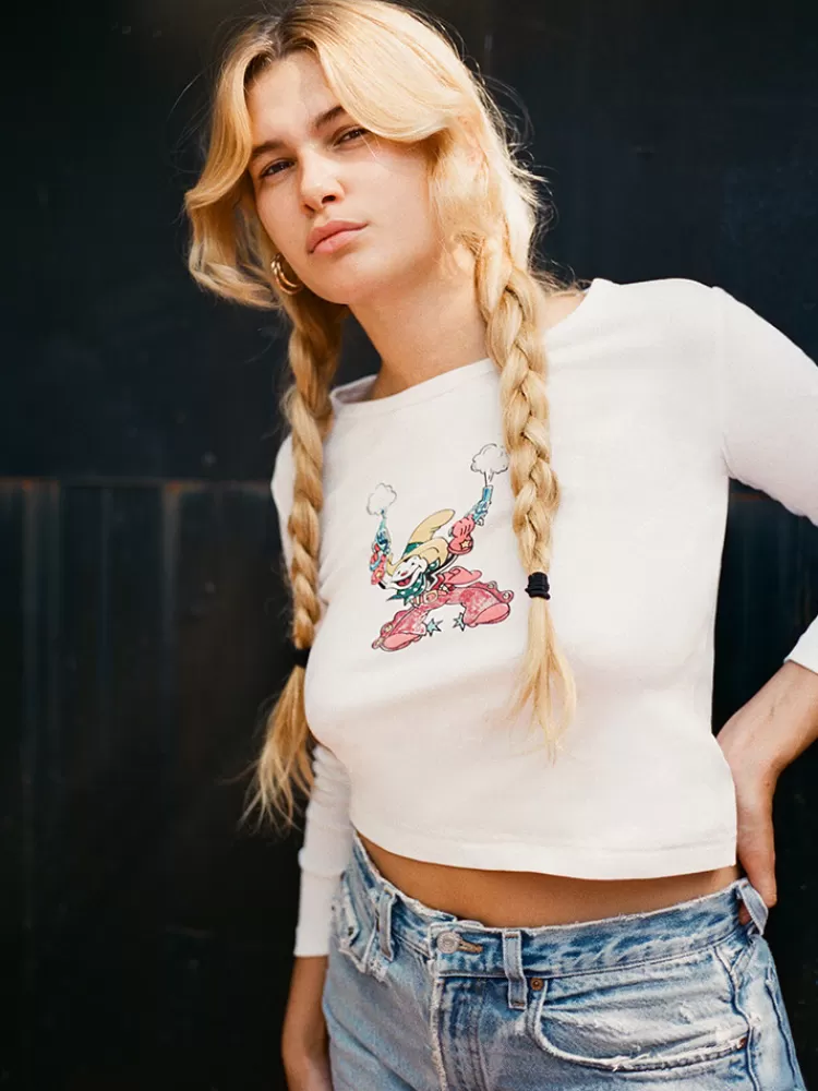 Giddy Up Dreamgirls, The New Long Sleeve Baby Tee Is Here! It’s The Body Of Our Baby Tee Fit With A Wider Neckline And Long Sleeves. It’s The One You’Re Going To Want To Throw On With Your Tightest Jeans, Your Leather Pants, And Your Joni And Naomi Skirts, Yee-Ha!